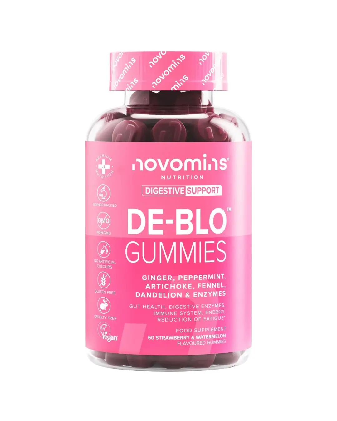 „Novomins De-Blo“ guminukai – tai kasdienis maisto papildas virškinimo komfortui. Kiekvienoje 2 guminukų porcijoje yra skaiduloms naudingo inulino, obuolių sidro acto miltelių ir 2 milijardų žarnynui naudingų bakterijų, taip pat artišokų, kiaulpienių, pankolių sėklų, imbiero ir pipirmėčių ekstraktų.
