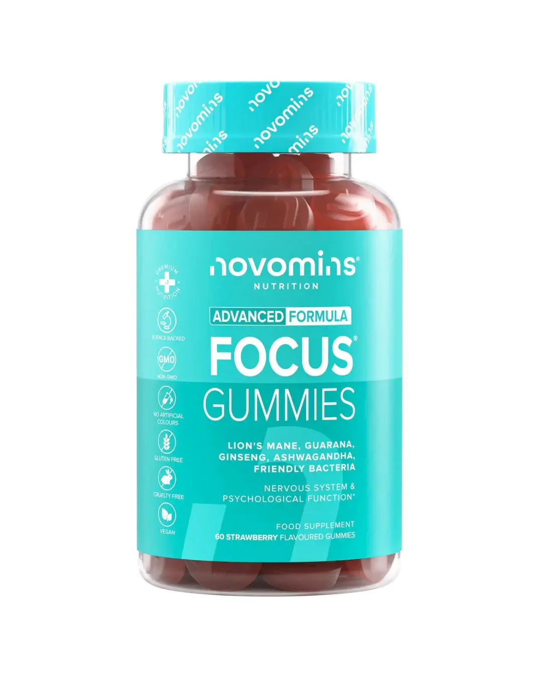 Sudėtyje yra nootropinių medžiagų, tokių kaip ašvaganda ir ginkmedis- dažnai naudojami formulėse, kurios skatina susikaupimą ir koncentraciją. Šie guminukai pagaminti iš natūralių ingredientų, tokių kaip guarana ir žaliosios arbatos ekstraktas. Papildomi B grupės vitaminai padeda palaikyti sveiką nervų sistemą, palaiko psichologines funkcijas ir mažina nuovargį.